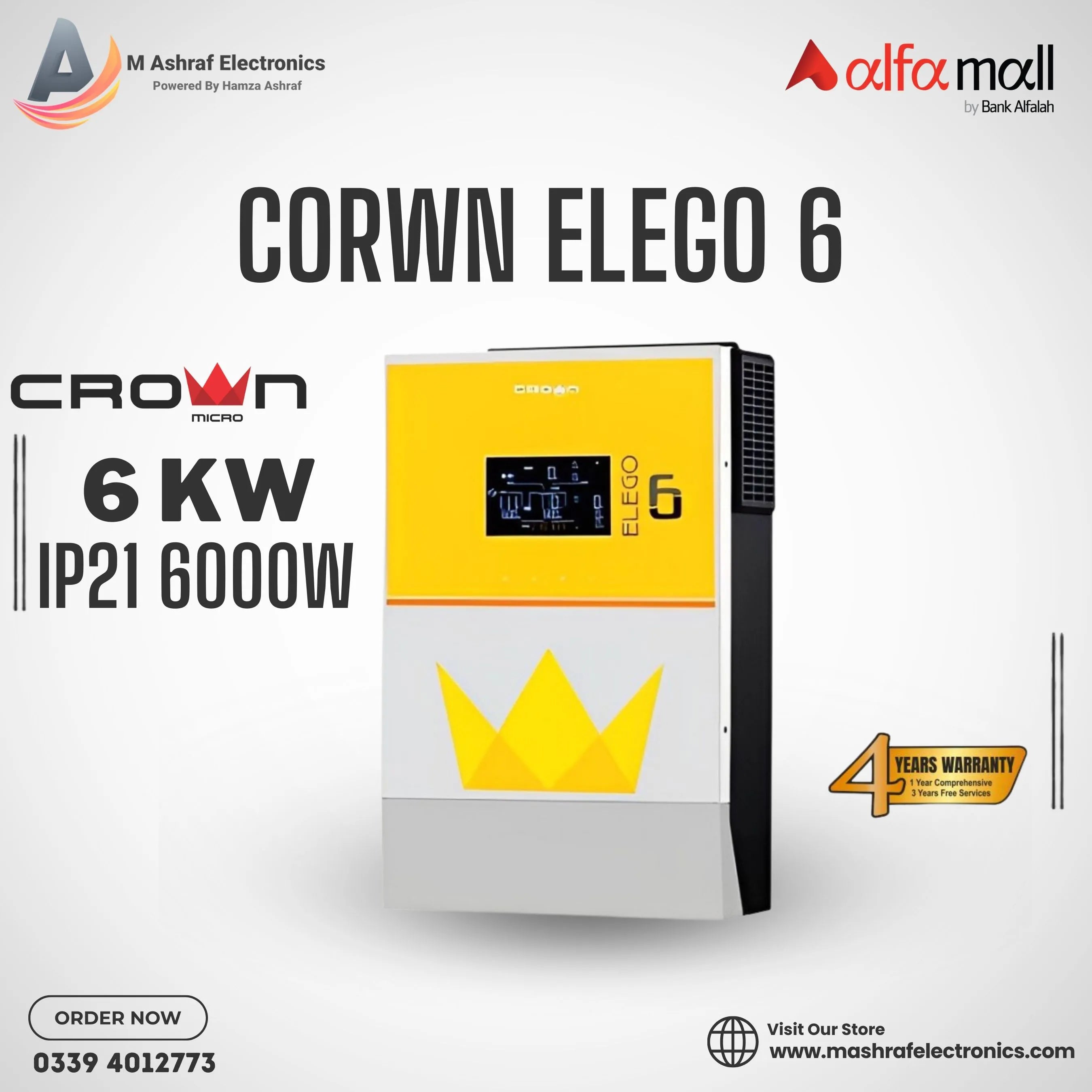 Crown 6kW inverter Parallel operations up to 9 units. Self-consumption and feed in the grid. Battery Independent System With Touchpad Pure sine wave output. User-adjustable charging current and voltage. With inbuild dual output With 5″ LCD & Touchpad, with inbuilt BMS and WIFI. Programmable supply priority for PV, battery, or grid.